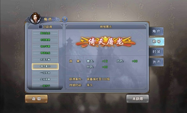 在江湖中行走,拥有一个响亮的名号,是所有武侠迷心中的梦。在《倚天屠龙记》手游中,称号系统将圆玩家这个梦。