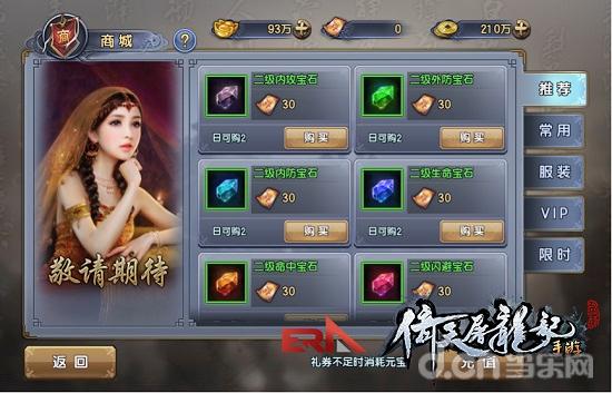 最后就是比较常见的设定了,如商店刷新时间比较漫长,如果花费元宝的话,就能立即刷新了。至于土豪专用的元宝商城,这里就不做太多介绍了,总的来说就是有多大能力消费多少钱,用零花钱轻轻松松快快乐乐的消费,才是正确的游戏方式啦。