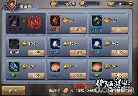 《倚天屠龙记》中的商店系统主要分为常规商店和元宝商城两类。常规商店主要包括杂货商店,荣誉商店,势力商店,声望商店和随机商店,而元宝商城当然就是土豪玩家的福音了。值得注意的是,目前手游中的背包已提供了出售物品的功能,所以玩家并不需要跑回商店再去清空包裹了。如果不小心卖错了东西,玩家也可以在48小时内回购自己卖出的物品,回购价格为出售的价格,十分人性化。