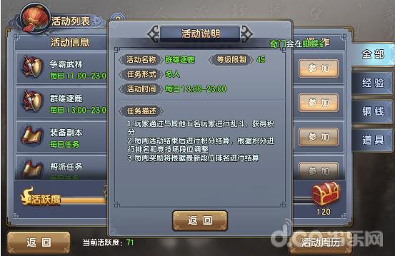 点击活动→群雄逐鹿,参与即可参与匹配,玩家通过与其他五名玩家进行战斗,击杀玩家获得活动积分。