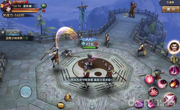 和罗汉阵副本单一挑战不同,亦道峰副本中,玩家需要依次接受少林、明教、峨眉、武当四个门派的挑战。每个门派都有2波攻势,2波攻势过了之后还要挑战门派BOSS,分别是:少林圆真、明教张无忌、峨眉灭绝师太和武当张三丰。