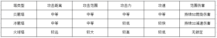 7、玩家击杀敌对可以获得木材,使用木材可以在场景中造箭塔,升级箭塔,有下列几种塔可供选择