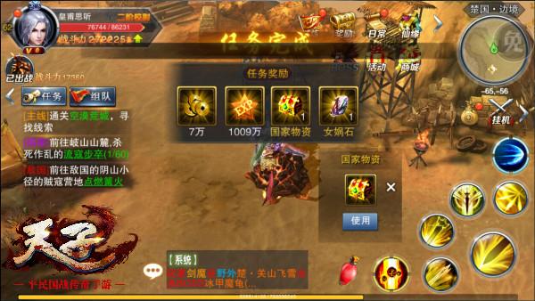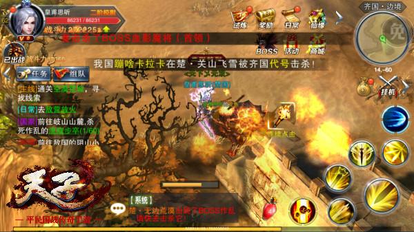 年度热血骑战动作手游《天子》全新版本“皇城争霸”震撼上线!端游级经典国战体验,还原最初的国战激情:独创“MMO”超大自由世界,尽享自由PK;丰富玩法体验,攻城野战成就一世英豪。跨服争霸体验热血掌上国战;仙灵转生,帮会建设,自由转职,打造真正属于你的“英雄”。更有边境争夺、押运粮草、刺探情报、组队禁地等超多团战PK玩法等你体验哦![详情]