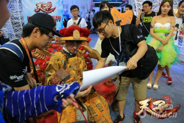 近来,国民亲戚成为了大家争风吃醋的人物,从“国民岳父韩寒到”国民媳妇“刘涛再到本届CJ最大咖的明星有着”国民老公“称号的王思聪,都在网络上有着超高的人气,按照剧本来写”国民老公“王思聪应该成为众多女生们的追捧合影目标。没成想,今年CJ的舞台却意料不到的巨大的反转,《天子》手游的showgirl们化身一位位惊艳动人的绝世皇妃,举起”臣妾求翻牌“的字样牌,带着天子龙袍服饰,在CJ现场所有的游戏发烧友当中,寻找那位心心相印的真命天子抢走了王公子的风头。那些被找到的真命天子也是幸福得难以言表,被皇妃们众心捧月般的带回《天子》手游展区,坐上雍贵华丽的龙椅,手持无上皇权的玉玺,身边皆是美人环绕,最重要的是还可以体验号令天下的英雄快感。