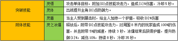 作为仙灵萌宠,大家一定最关心仙宠的技能。雪灵的技能可谓华丽而实用。突破技能可以增加主人战斗力,提升防御力之外,更可以在主人承受暴击时,吸收主人收到的伤害。附体技能—灵之冰爆:除了获得额外攻击加成以及减速的技能效果以外,还可以减免伤害。