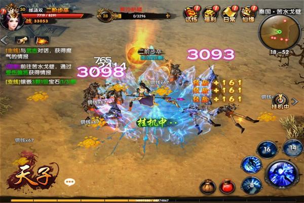 年度热血骑战动作手游《天子》全新版本“皇城争霸”震撼上线!端游级经典国战体验,还原最初的国战激情:独创“MMO”超大自由世界,尽享自由PK;丰富玩法体验,攻城野战成就一世英豪。跨服争霸体验热血掌上国战;仙灵转生,帮会建设,自由转职,打造真正属于你的“英雄”。更有边境争夺、押运粮草、刺探情报、组队禁地等超多团战PK玩法等你体验哦![详情]