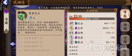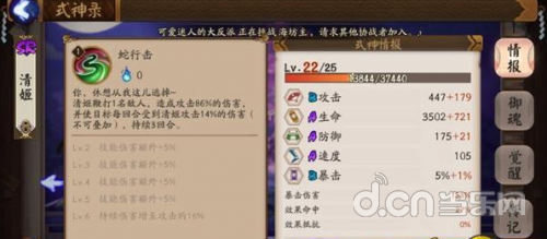 值得注意的是普攻是必上毒的。同时被动狂暴状态增加10%攻击稍稍弥补了伤害的不足。好了上面的都是给不了解清姬的新人看的,接下来说下我个人对于清姬的理解。首先我不觉得清姬当条控制蛇,即使大招有着3段的攻击设置我也不觉得她会比雪女做得更好。那么作为输出,又要怎么来养成呢?(清姬大招按照3层毒来算36%乘以3+14%乘以3等于159%,让我同样想起了同样攻击成长只有B,但是大招攻击加成158%的青行灯,所以还是可以作为输出来用的)我觉得对于清姬来说,最重要的属性是攻击,次属性生命和防御(偏向于防御),再其次是命中(普攻上毒是百分百),再其次是速度,最不需要的就是暴击了(毒是能暴击但是14%的攻击比例暴击了伤害也不高,同时成长也只有B)。清姬的被动为每次行动结束后50%概率狂暴,所以在御魂方面很多人选择轮回道,我个人推荐狰。首先,我要纠正一个误区,行动结束和回合结束是不一样的,轮回道触发了也只是增加一次出手机会,而狰受到攻击就有概率触发,出手机会比起轮回道要高的很多,被动触发概率更高,同时普攻上毒百分之百,也更容易叠毒。其次,轮回道的清姬很可能面对触发了被动放不出大招的情况,而狰可以根据是否触发被动,来调整鬼火要交给谁来使用更加灵活。而且,轮回道并不能在御魂副本里刷出来,而狰可以,在获取高星级的御魂方面更加便利。