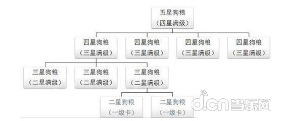 简单做个计算吧,一个五星狗粮需要四个四星、十二个三星和二十四个两星的狗粮!那就是要消耗5个奉为达摩和三十六个普通的N卡!这还是只是一个五星狗粮的数量,所以工程量是十分庞大的。