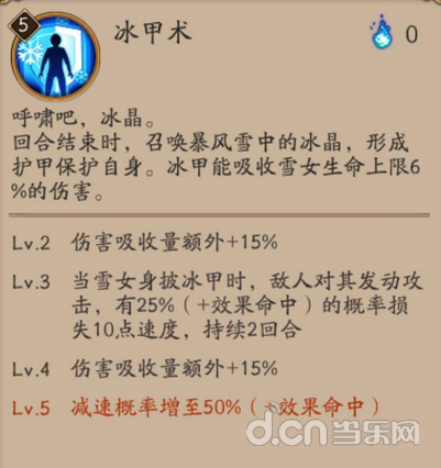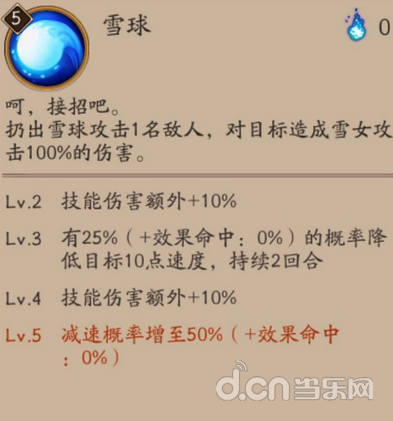 △一个增加雪女生存能力的被动,让2号位速度4号位效果命中的雪女在回合外有一定的生存能力。同普攻、减速效果可以和大招形成联动。属于不功不过的一个被动。