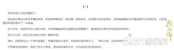 健康的胡萝卜的“镜殇”是以神乐视角讲述的故事,文笔清新淡雅略带惆怅,有一种扯着你不放一定要读下去的魅力。