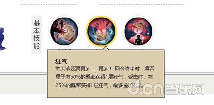 被动叠加狂气,回合结束50%几率,受击25%几率叠加buff,最多4层,可被驱散。