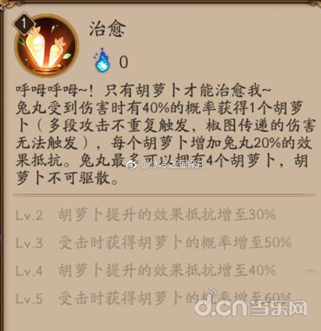 b、根据胡萝卜数量提供抵抗:满技能+满萝卜=160%抵抗。