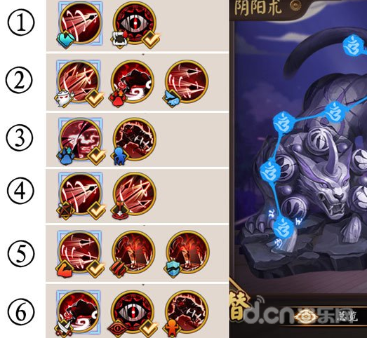 因为阴阳师只能带3个技能,所以还要考虑组合方式。