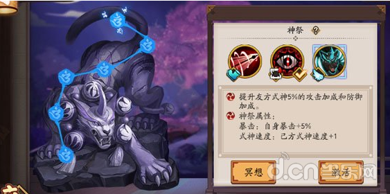 每个位置增加一个一个提升阴阳师自身属性或者全体式神属性的神祭点