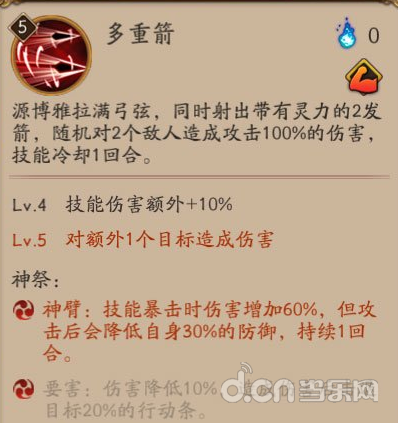 多重箭:在②要害和⑤神臂里,要害配合多重箭可以造成3个敌人的推条,斗技控制队必带~