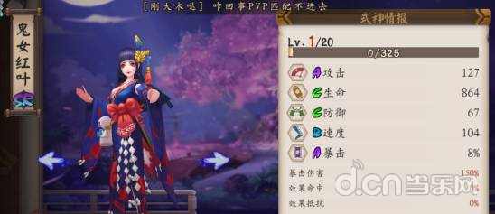 SR式神中群攻比较不错的一个,尤其是技能可以在杀死对手后造成固定的伤害,这个技能还是很不错的。而且红叶的本身暴击也比较不错。在没有SSR式神的情况下,带一个红叶作为刷图式神也是非常好的选择