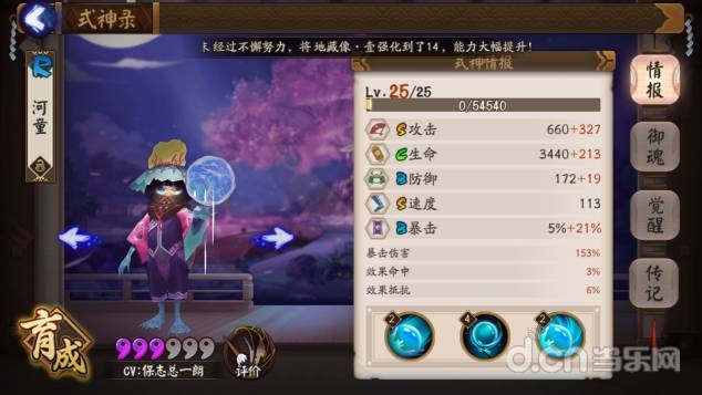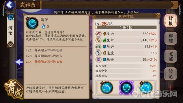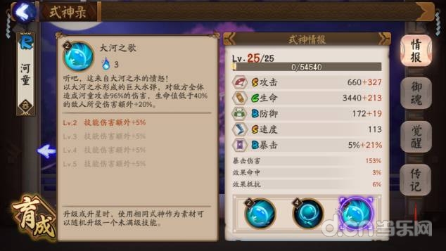 2技能重点来了。。满级之后每回合提高30%的攻击,可以叠四成,也就是说可以提高120%的攻击。。但是只加基础攻击。。不过你想想御魂2件套加15%攻击。。河童等于穿了8个两件套。。而且不会被驱散。。你说腻害不腻害(死亡之后复活起来则会消失)