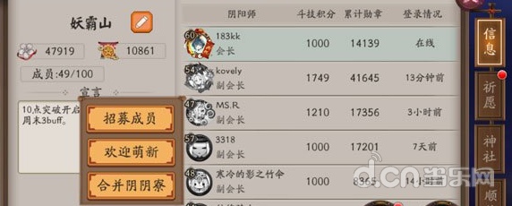 4、因此,合并阴阳寮功能加入之后,高端玩家直接的联合作战会变成后续的趋势~