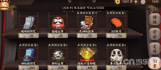 2.神龛商店定期上架御行达摩,价格为1500御札,每次上架限购1个