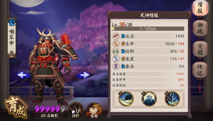 输出方面针对对面式神不同,个人选择不同,对面没有雨女的情况下,倾向于酒吞~或者单点妖刀,暴伤荒川均可。