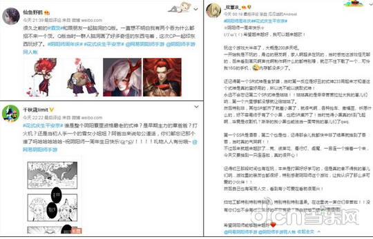 目前,微博#花式庆生平安京#话题已拥有近2千万的阅读量和2.3万的讨论量,玩家们或执起画笔为自己的本命式神强力打call,或脑洞大开描绘出独特的平安京物语,或洋洋洒洒千字文讲述自己加入阴阳师队伍的心路历程……无论是何种形式,篇幅长短,都能感受到来自玩家的满满爱意。同时,也希望更多的玩家能够说出自己的故事,为自己点赞,也为《阴阳师》加油,在平安世界度过下一个再下一个的春夏秋冬。