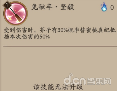 【兔狱卒坚毅】:受到伤害时,芥子有30%的概率替蜜桃真纪抵挡本次伤害的50%。