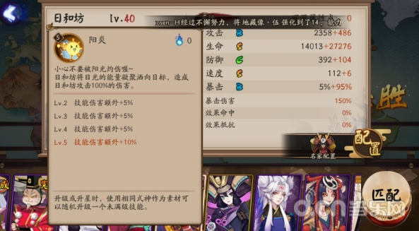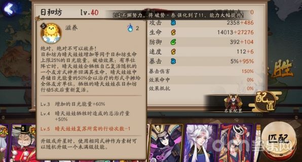 日和坊的整体面板为BSCSB,作为一名辅助式神,面板合格。而S级别速度112不是特别快。
