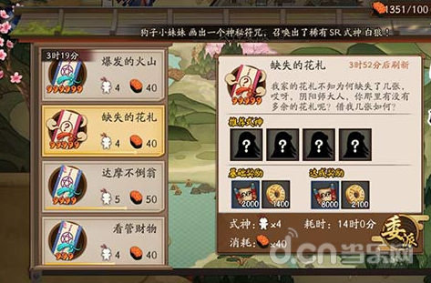 在阴阳师式神委派中,选择推荐式神可以不仅提高任务成功率,同时还能获得额外奖励,其中大部分任务游戏都会直接提示,不过有些任务的推荐式神则需要自己猜测,例如下面要说的这个——缺失的花札。