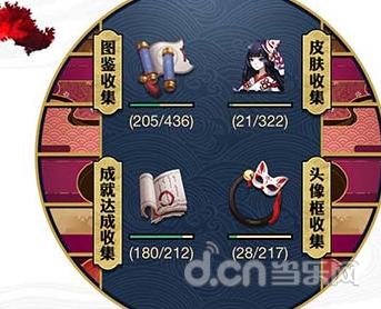 式神皮肤收集:每收集一个皮肤记7分,总共322分