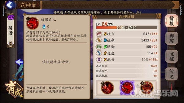战斗思路:1速拉条→2速拉条→般若行动(封御魂、被动)→座敷童子回火→输出式神输出→神乐疾风输出式神→输出式神行动。