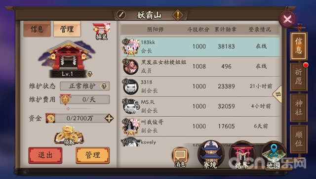 ③高级阴阳寮每天需要缴纳一定数量的阴阳寮勋章作为日常维护费用,若维护费用不足超过一定时间,将会导致阴阳寮降级;