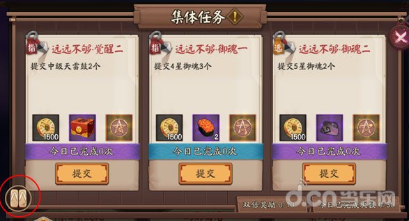 点击阴阳寮→栏右边「神社」-「集体任务」进入查看