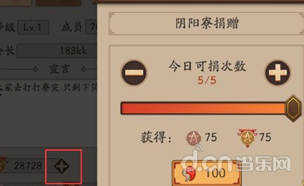 勋章获得途径:寮活动,为集体贡献阴阳寮勋章(红圈处点击捐赠,消耗勾玉)、建设度