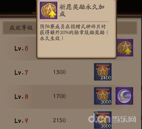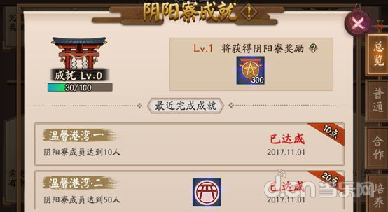成就点数达成后固定数量(0-1级需要1000点)可以提升阴阳寮的成就等级;