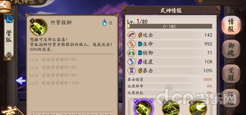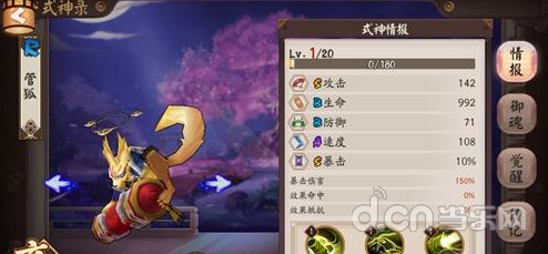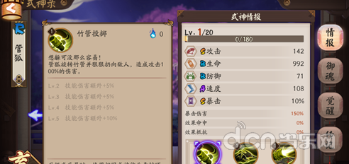 管狐作为一个R级的式神,在属性面板上还算比较合格,觉醒之后的属性为S级攻击,B级生命,B级防御,A级速度,S级暴击。和一般的输出式神相比,除了速度方面略有些逊色以外,在攻击和暴击方面都想打不错,已经可以作为一个输出核心了。