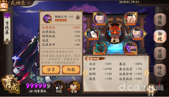 首先是六星御魂,主属性效果抵抗,副属性带效果抵抗,套装属性效果抵抗。