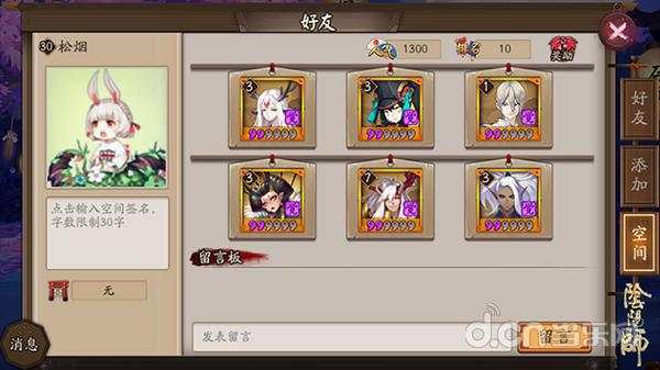 玩家还可以把自己拥有的式神放在个人空间中展示,好友可以围观他的式神等级、星级以及御魂装备等,还能够在空间下留言吐槽,成功打造了阴阳师游戏内的“朋友圈”。
