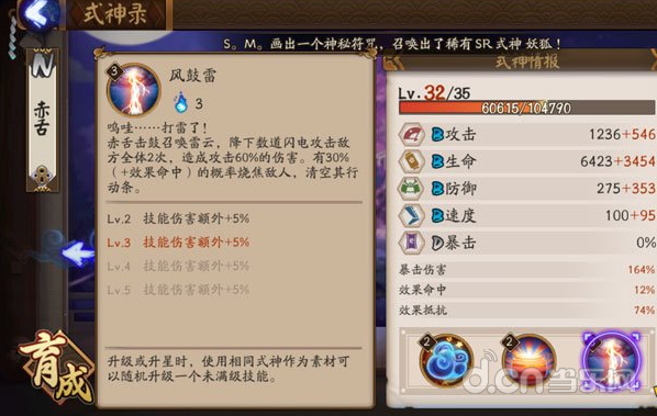 注意:赤舌升级技能后显示受到效果命中加成,但是实际测试中并不会受到效果命中加成,但也不会被抵抗