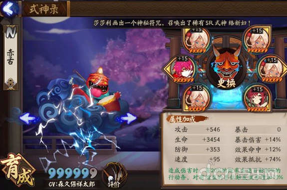 御魂的副属性极限堆速度,速度越快越好。因为赤舌天生100速度,无法觉醒,速度快才能多次出手套圈,达成无限击退的效果。