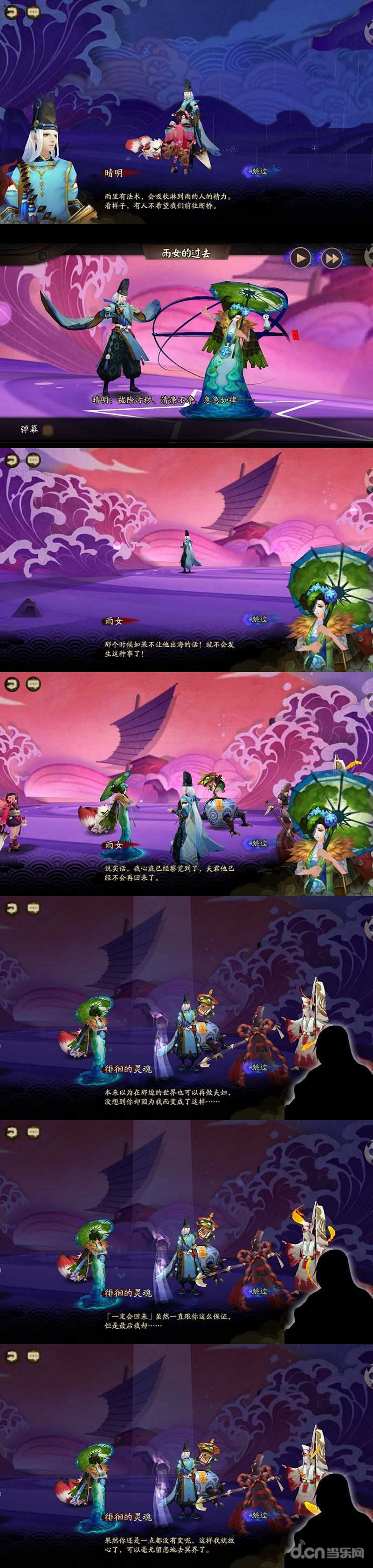 断桥处的阴界裂缝结界减弱,晴明等人来到断桥处,遇到了带有诅咒的不详之雨,在青蛙瓷器的帮助下他们来到了断桥,见到了混乱中的雨女,晴明将她封印。雨女生前对于丈夫深深的愧疚和思念让她变成了妖怪,在鬼使兄弟的帮助下雨女见到了丈夫的亡魂,互诉衷肠后丈夫的亡魂归于往生,雨女作为妖怪继续生活。