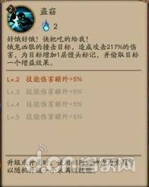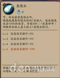 其实普攻和2技能的核心目的就是叠馒头印记,偷取BUFF是附加效果而已,而馒头印记会给予我们大招额外30%的成功率,2层印记直接飙升到90%成功,只要吃下了,那对不起,你所有的有益BUFF全部消失,看清楚是所有的!!!所有的!!!所有的!!!什么兔子辣条加攻啊,酒吞狂气啊,椒图的链子啊,都没了。并且觉醒后该技能还会变成一个AOE。满技能是120%的群体伤害。