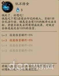 可以看出,饿鬼的面板成长非常均衡,没有拔尖的S成长,但基本全A保证了饿鬼是个综合能力不差的式神,当然全面均衡也意味着全面平庸,但是新版饿鬼的技能,注定了这个式神的不平庸。