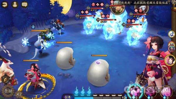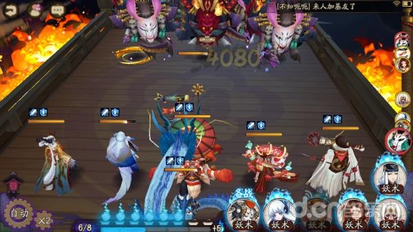 其中,3、4、5、6速度没有严格限制,谁先谁后都没有关系,由于阴界之门每每进入一个新的回合镰鼬都会拉条,雪女都会下雪(火灵座敷提供了6火),所以直接这样挂机即可。