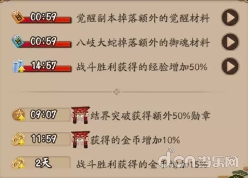 阴阳寮购买的BUFF(御魂&觉醒BUFF除外)、月卡中的15%加成BUFF(期待寮办大大未来开发更多美味BUFF!坐等吃撑~)