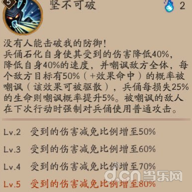 ※[坚不可破]调整:提升了在石化状态下的伤害减免,满级伤害减免效果由40%提升至80%,但在石化状态下会降低自身速度40%。
