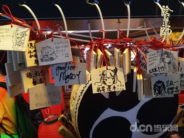 万圣捉妖活动现场,还原了众多《阴阳师》游戏内特色场景,将阴阳寮结界中的祈愿演绎为现实中的许愿墙,玩家粉丝们可以在许愿墙前写下心愿,欢乐许愿热情互动,许多玩家挥洒才华,手绘式神花式许愿。