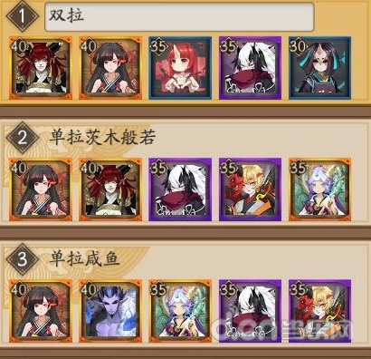 基本上以上两个阵容就可以通吃所有结界了,另外一说,本人练度很低。。只有茨木、花、咸鱼是六星,其他都是五星。。御魂都很多是12级的。。