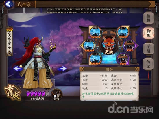 测试时附带唯一增益效果,晴明的言灵星(增加30%伤害)