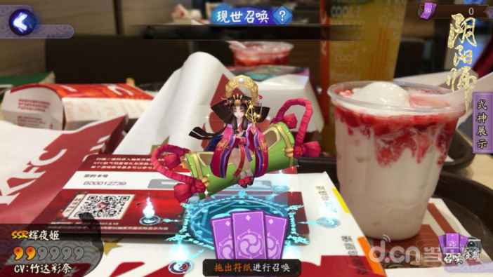 众所周知,凡在KFC门店购买“欧气明星餐”的顾客,均可获得《阴阳师》限量闪卡一张。闪卡不仅能作为官方周边收藏以外,更能兑换1~7张不定的现世召唤券。KFC门店及闪卡卡背均设立AR召唤阵,方便玩家在活动现场进行式神召唤。从一开始眼馋他人在世界频道召唤出SSR式神,到在微博、朋友圈等社交平台看到别人的式神,到漫展现场抽取,再到玩家齐聚一堂进行式神召唤,《阴阳师》手游完成了玩家们线上线下交流的过渡工作。