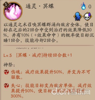 通灵·冥碟:组合①和②,对付奶队使用的,比如对方带花鸟卷,失心300%的沉睡概率基本可以硬控对手